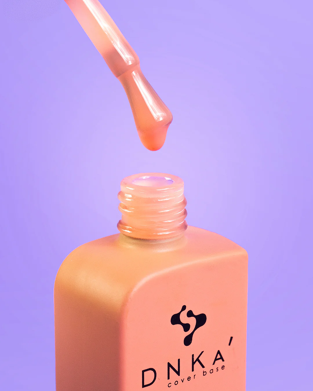 4️⃣ Aplicar DNKa’™ Cover Base con una capa niveladora, secar en una lámpara LED/híbrida durante 60 segundos (o en una lámpara UV – 2 minutos).