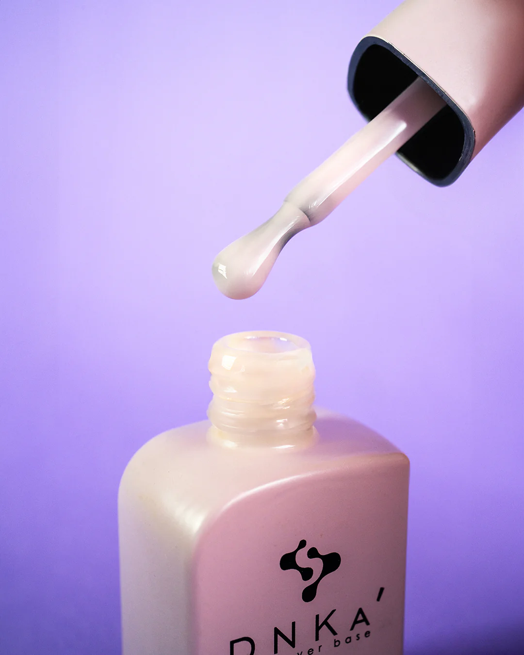 4️⃣ Aplicar DNKa’™ Cover Base con una capa niveladora, secar en una lámpara LED/híbrida durante 60 segundos (o en una lámpara UV – 2 minutos).