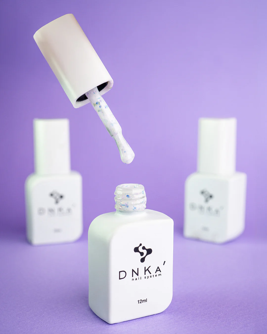4️⃣ Aplicar DNKa’™ Cover Base con una capa niveladora, secar en una lámpara LED/híbrida durante 60 segundos (o en una lámpara UV – 2 minutos).