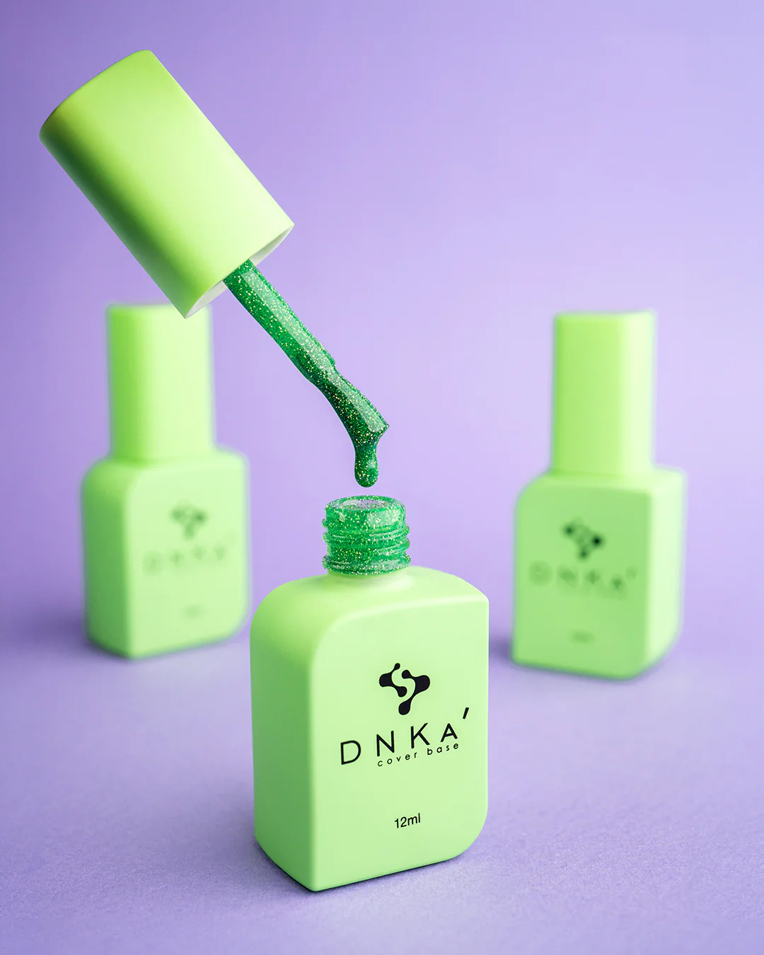 4️⃣ Aplicar DNKa’™ Cover Base con una capa niveladora, secar en una lámpara LED/híbrida durante 60 segundos (o en una lámpara UV – 2 minutos).