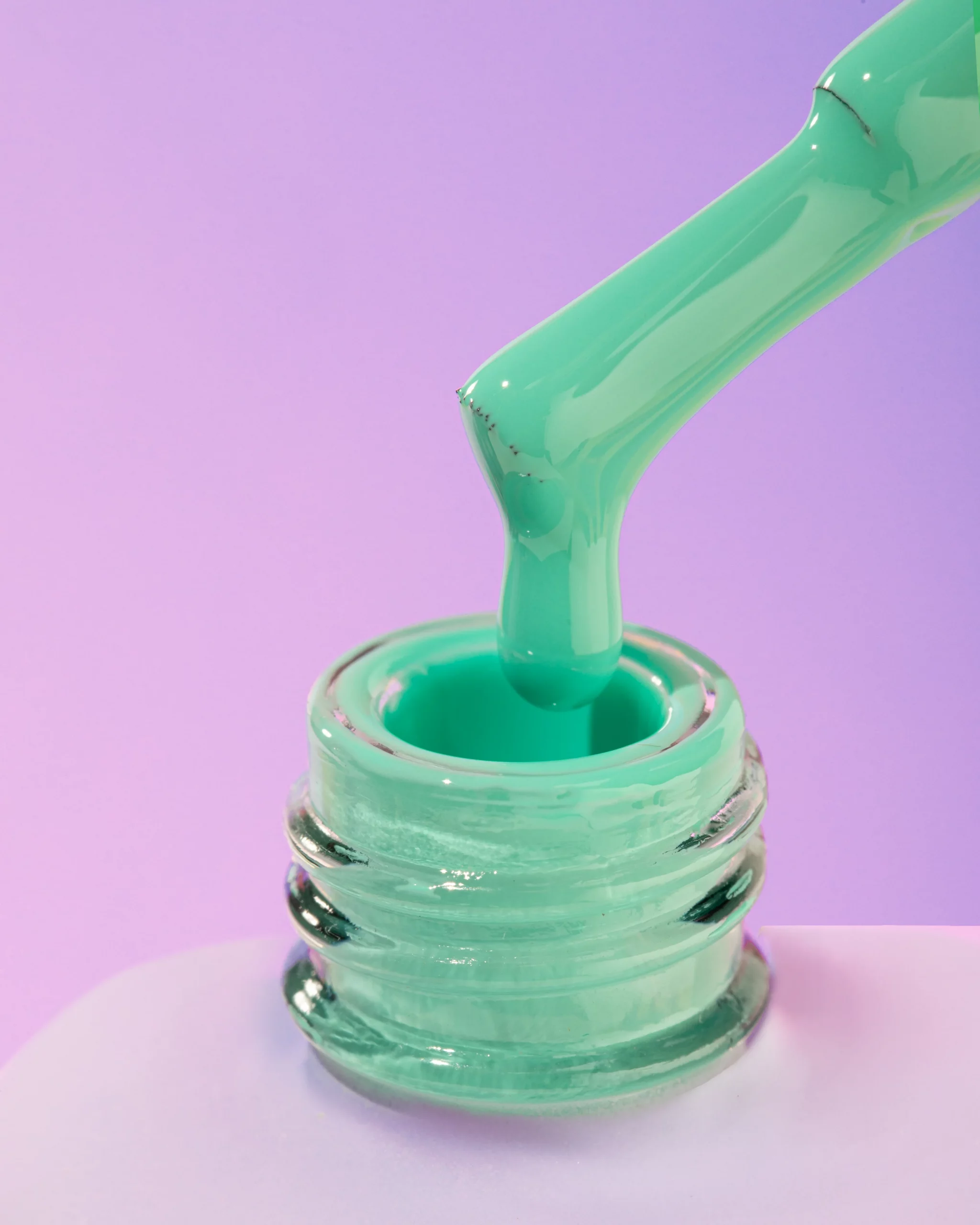 5️⃣ Aplique DNKa’ Esmalte Semipermanente en una o dos capas finas, seque en una lámpara LED/híbrida durante 60 segundos (o en una lámpara UV – 2 minutos). No sirve para hacer nivelacion.