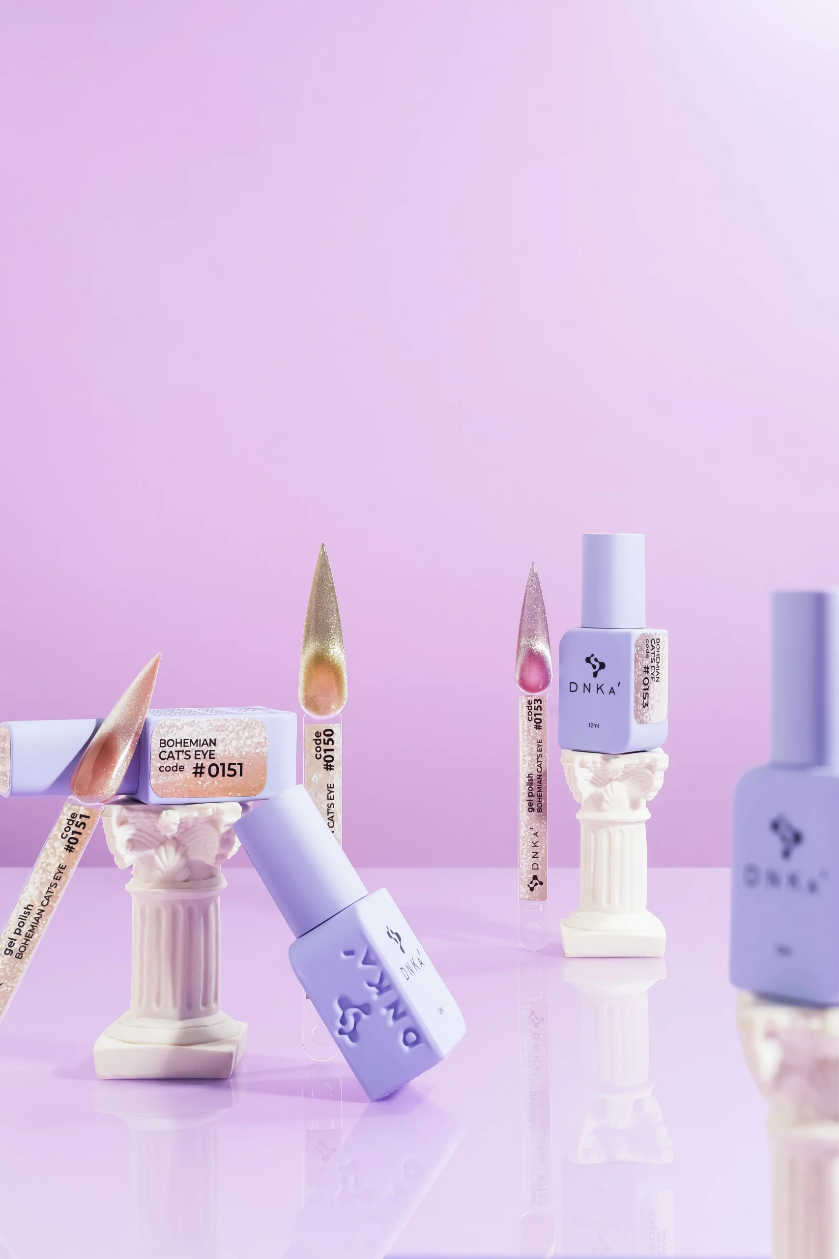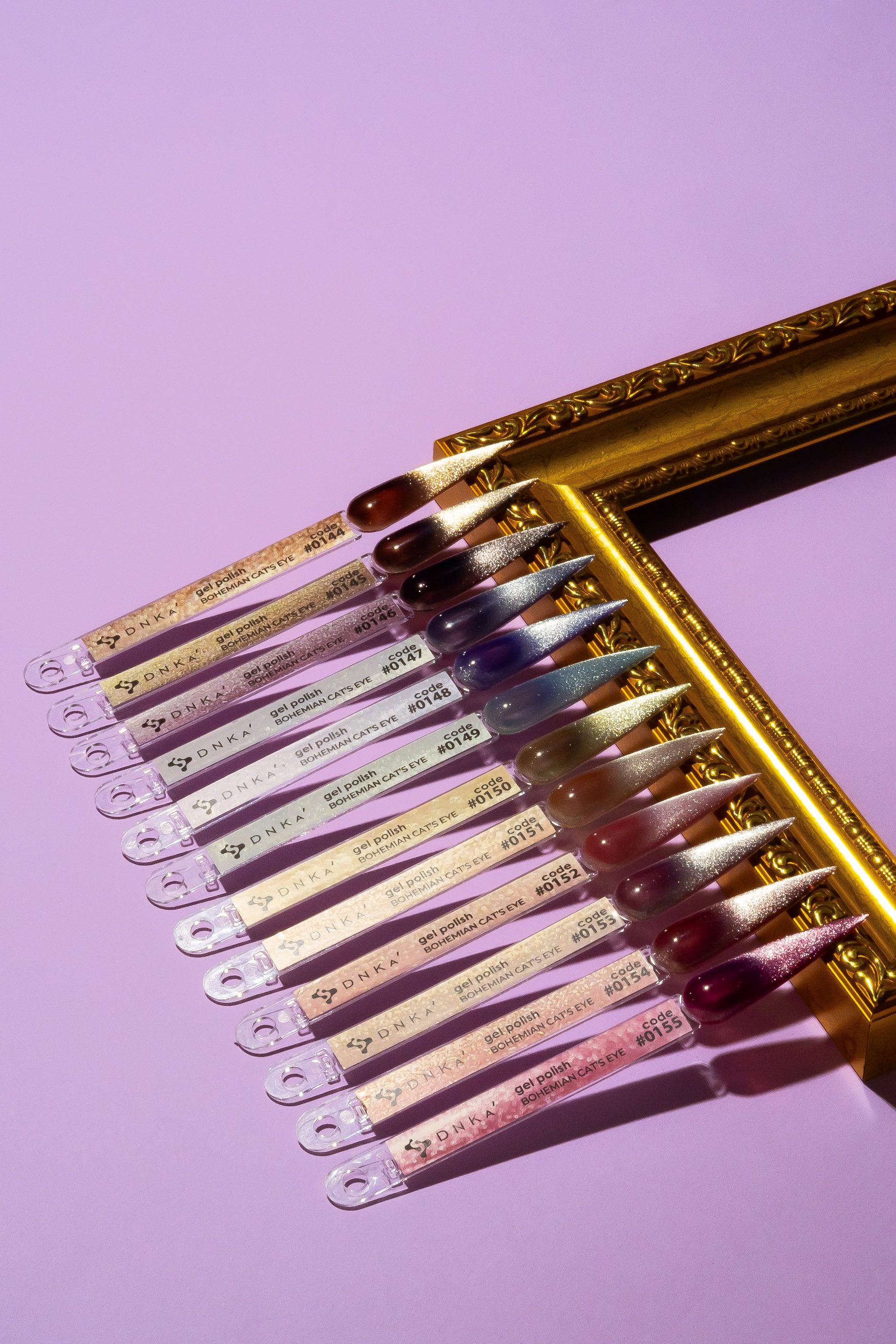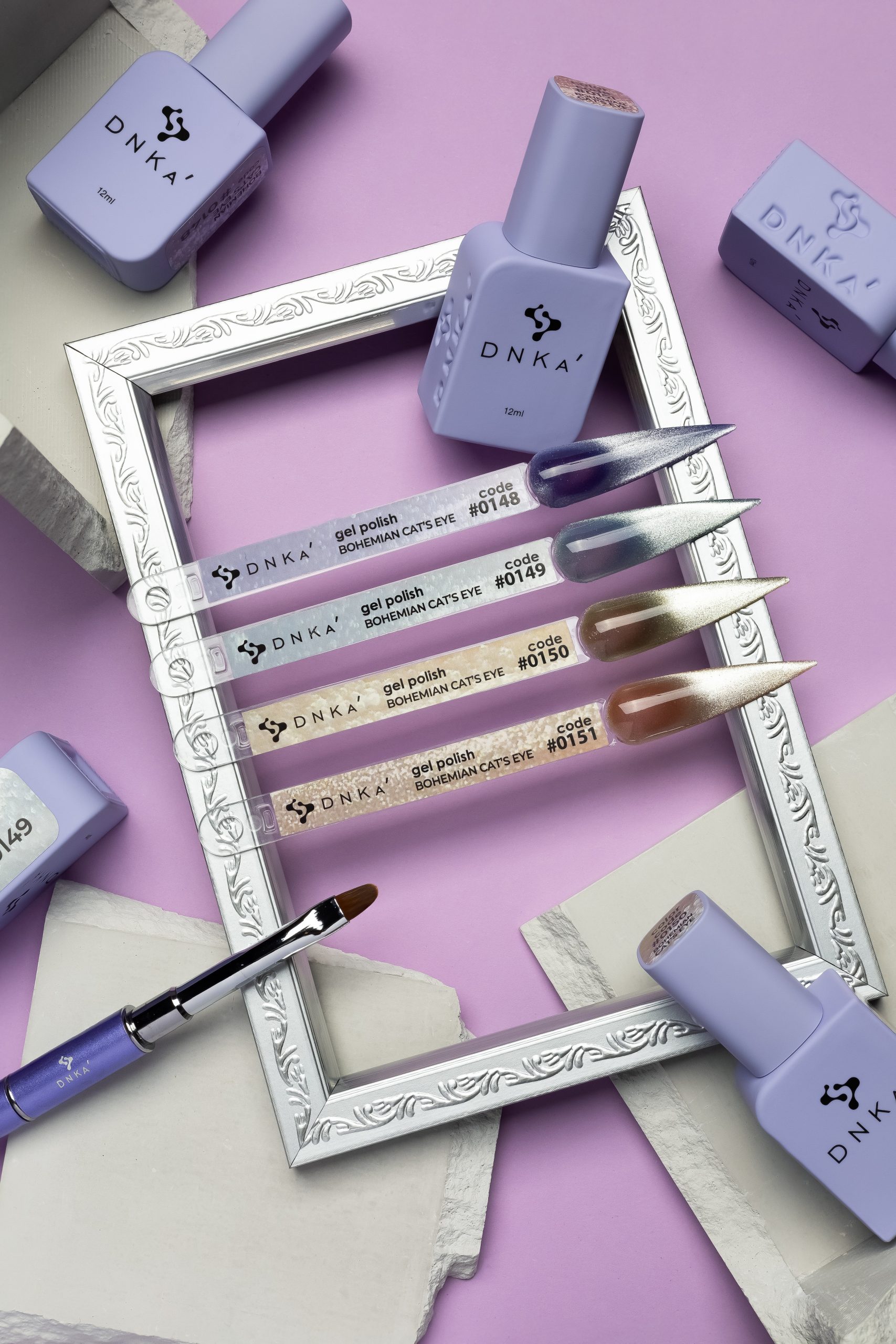 La colección Gel Polish Color Bohemian Cat Eye de DNKaʼ es una serie de 12 tonos únicos, llenos de elegancia y un inspirador efecto de «ojo de gato». Estos geles magnéticos de alta calidad te permiten crear diseños impresionantes con un brillo cristalino y profundidad que cambia según la luz y el ángulo de visión, evocando la belleza de las piedras preciosas.