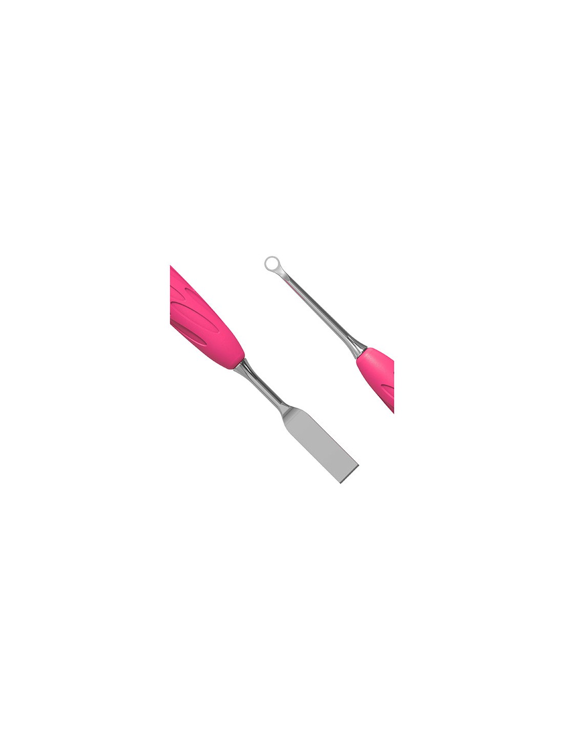 ▪ Empujador de manicura con mango de silicona «Gummy» (Empujador redondeado estrecho + empujador inclinado).